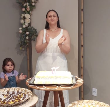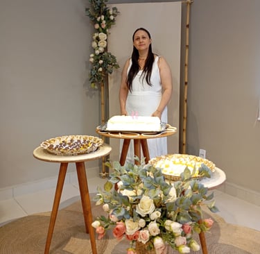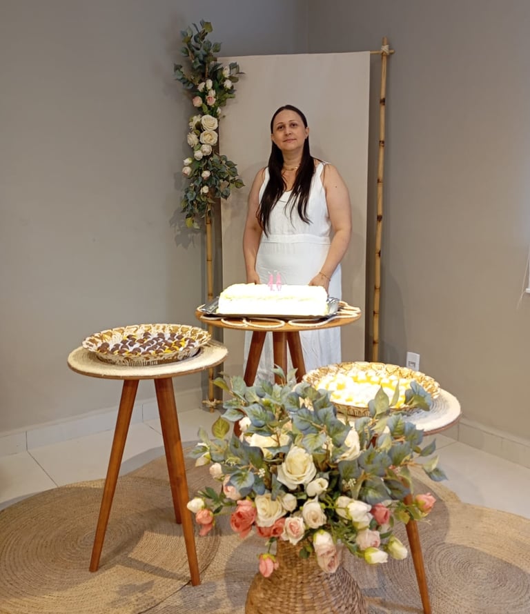 Mais do que uma comemoração, o aniversário de Michele foi uma experiência visual encantadora, onde a simplicidade encontrou a beleza das flores para transformar o momento em uma lembrança inesquecível.