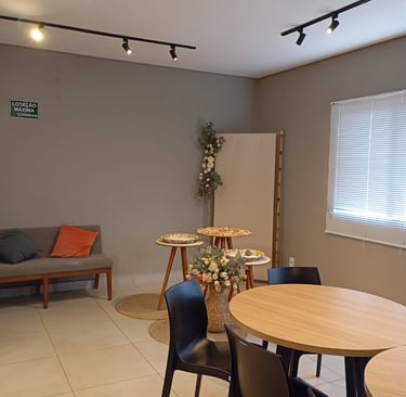 Com cores suaves e composições delicadas, os arranjos florais deram vida ao espaço sem excessos, criando um cenário clean, acolhedor e cheio de charme. Cada pétala contribuiu para uma atmosfera serena e contemporânea, refletindo a essência da aniversariante.
