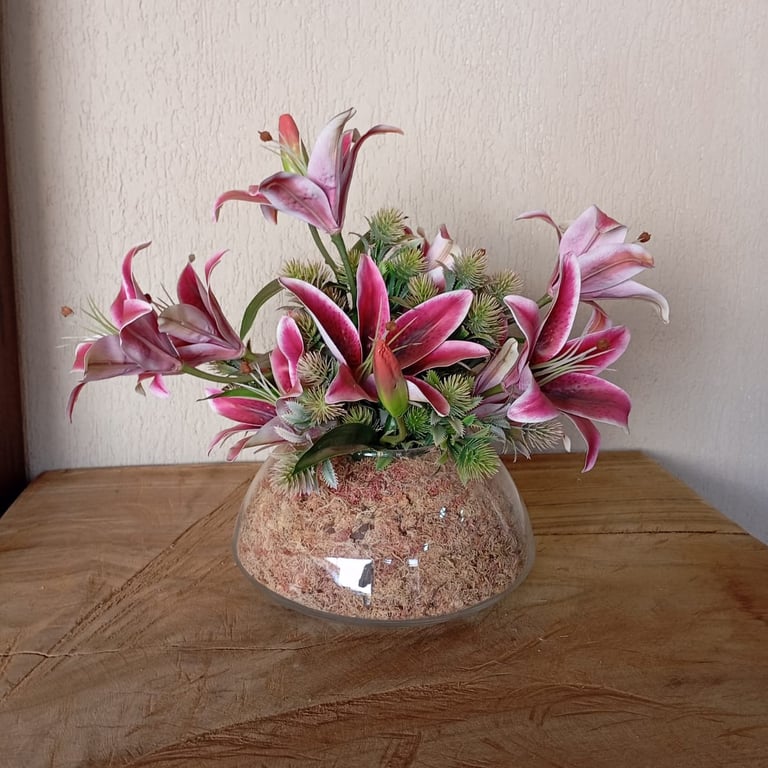 Composições florais permanentes para casamentos, recepções e ocasiões especiais, garantindo sofisticação sem preocupações.